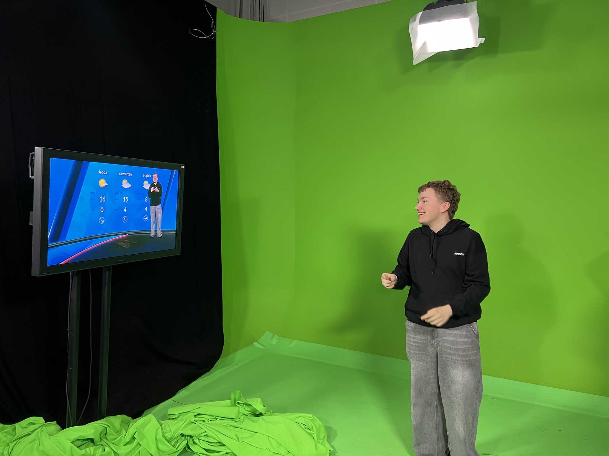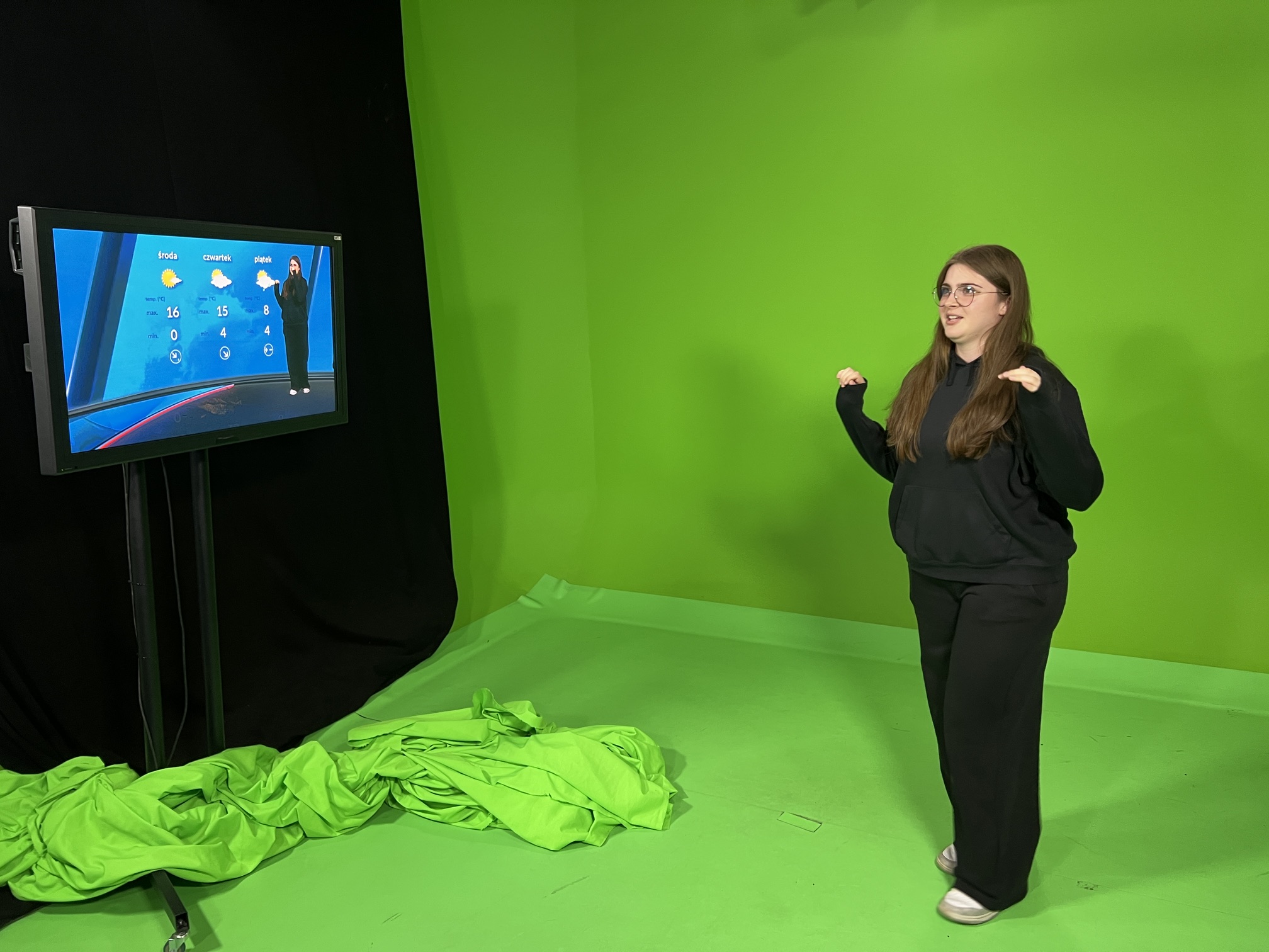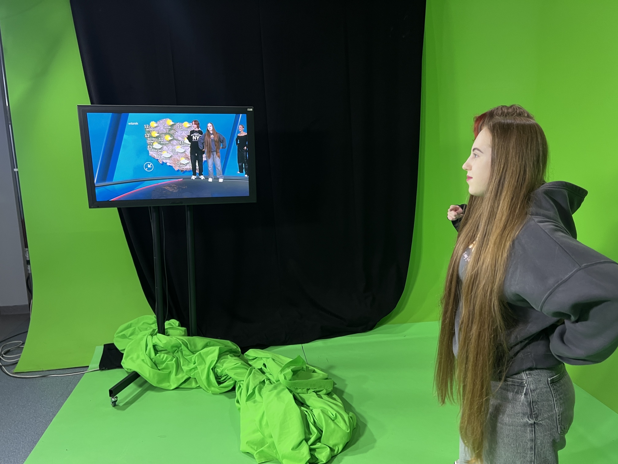 W dniu 21.04.2026 r. klasa 1R udała się na wycieczkę zawodoznawczą do TVP oddział Poznań. W trakcie pobytu w siedzibie TVP stanęliśmy przed kamerami próbując wcielić się w rolę osoby prowadzącej prognozę pogody, prowadzącej program kulinarny i program popołudniowy. Poznaliśmy cechy profesjonalnego dziennikarza oraz wiele ciekawostek z pracy przed i za kamerami. Dowiedzieliśmy się co to jest prompter oraz jaka jest zasada działania green screan’a. Udało nam się zajrzeć do studia, charakteryzatorni, reżyserki, a nawet do archiwum.