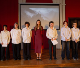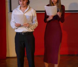 Szkolne Koło Teatralne przygotowało dla uczniów klas maturalnych adaptację jednego z najpopularniejszych dramatów Szekspira. Głośne czytanie sztuki z wykorzystaniem elementów gry aktorskiej okazało się dla wykonawców nie lada wyzwaniem, jednak po raz kolejny stało się okazją do pokonywania własnych słabości oraz kształtowania umiejętności współpracy z partnerem. Na scenie moglibyśmy zobaczyć uczniów klas czwartych, trzecich, a nawet pierwszych. Wyrazy uznania należą się zarówno dla „weteranów” sceny w Lelewelu, jak też debiutantów, którzy pierwszą tremę mają już za sobą. Po spektaklu aktorzy zaprosili maturzystów do rozmowy o problemach poruszonych w lekturze. Abiturienci chętnie dzielili się swoimi przemyśleniami. W dyskusji wzięła udział także Pani Dyrektor, która sprowokowała młodych ludzi do szukania uniwersalnych treści z Makbeta w naszej codzienności. Na koniec odtwórcy ról szekspirowskich postaci życzyli maturzystom pomyślności na egzaminach.